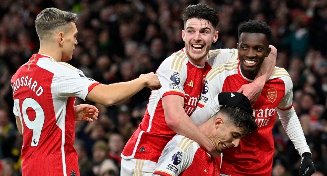 Mikel Arteta’s men showed composure to see off Brighton and Hove Albion on Saturday with goals courtesy of Gabrile Jesu and Kai Havertz to keep them on top of the log one point ahead of Liverpool who drew stubborn Manchester United side on Sunday.