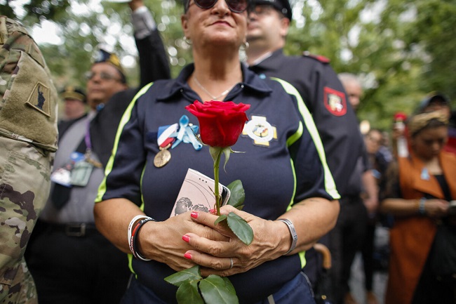 In New York, Vice President Kamala Harris and current and former mayors joined victims’ families at the 9/11 memorial on the site of the World Trade Center twin towers brought down by two aircraft flown by hijackers.