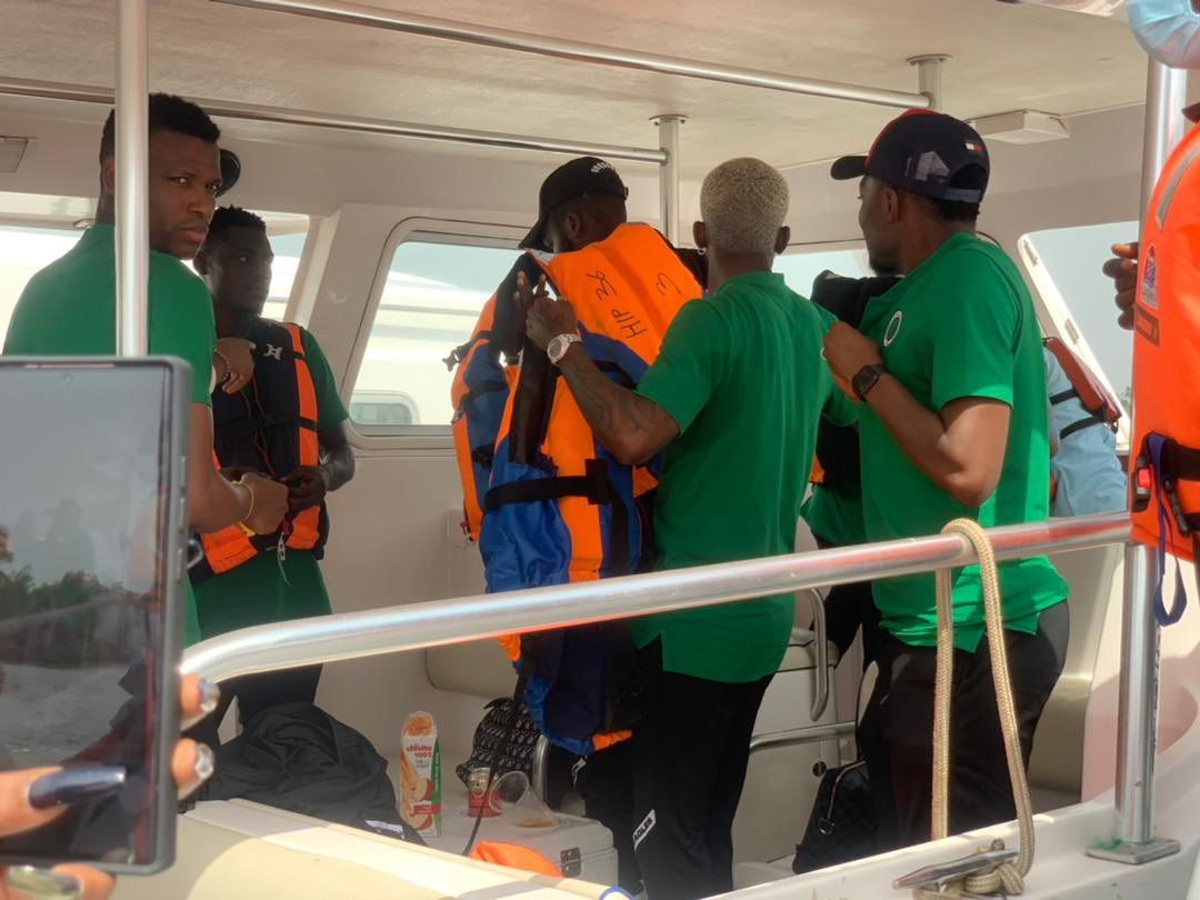 BREAKING: Super Eagles arrive Benin Republic by boat, in high spirit