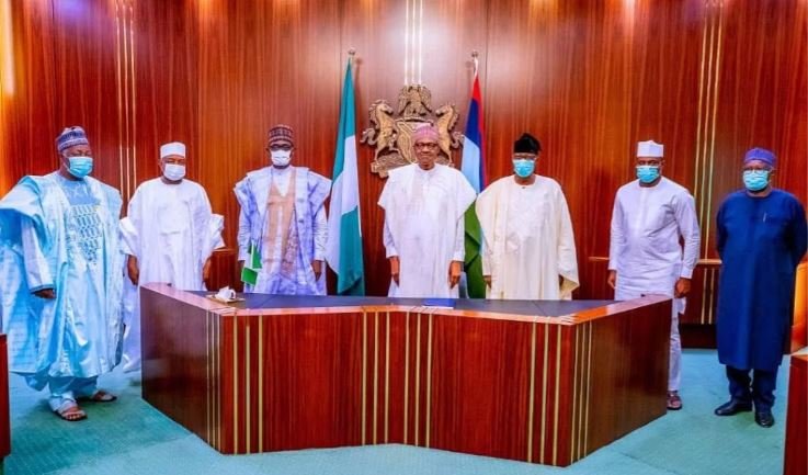 The Chairman, Caretaker Extraordinary Convention Planning Committee (CECPC) of the APC, and Governor of Yobe, Mai Mala Buni, accompanied Governors of Jigawa, Badaru Abubakar and Kebbi, Atiku Bagudu, presented Daniel and Bankole to the president.