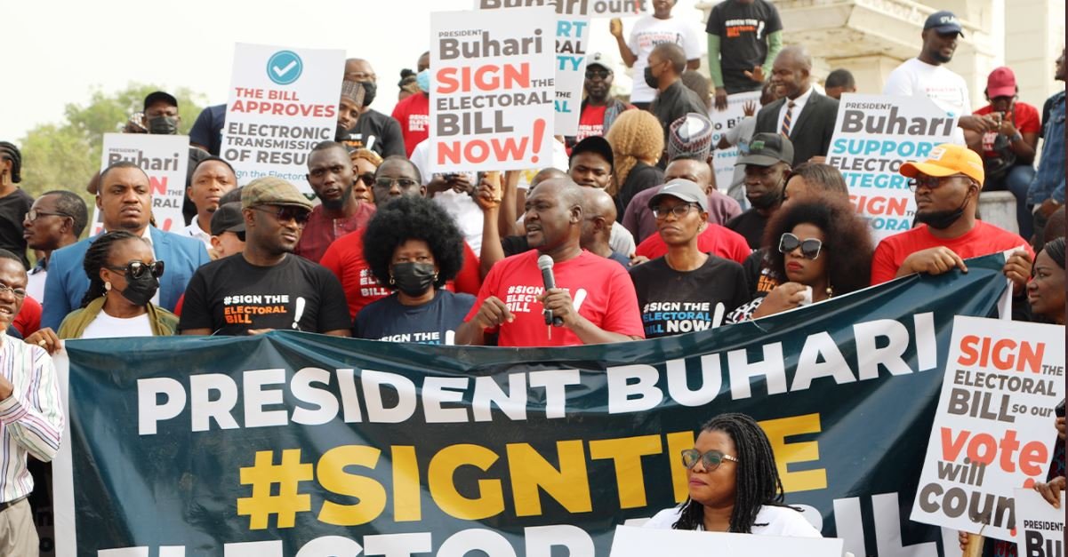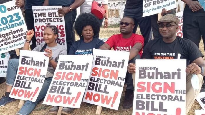 As Nigerians express concern about the credibility of the 2023 general elections, a coalition of over twenty-four Civil Society Organizations staged a peaceful protest in Abuja on Tuesday over the delay by President Muhammadu Buhari to sign the amended electoral bill into law.