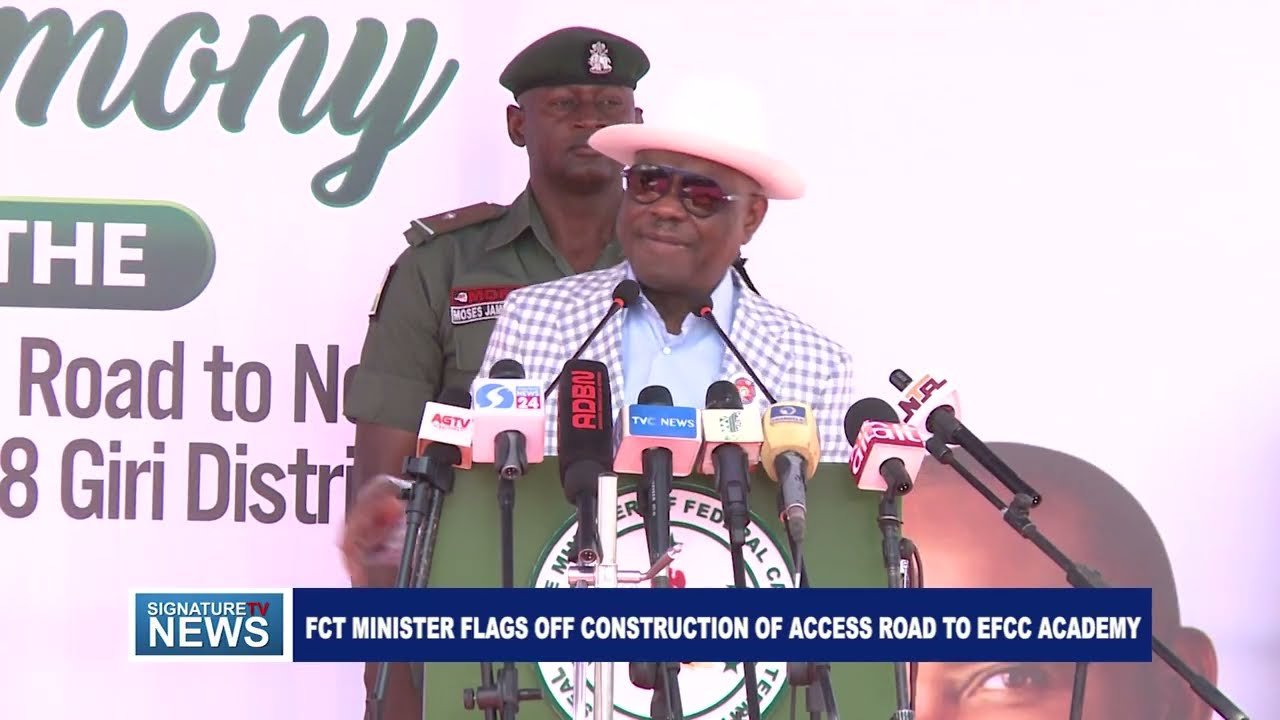 The Minister of the FCT, Nyesom Wike on Thursday, flagged off the construction of the access road to the new EFCC Academy Site in the Giri District of Abuja.