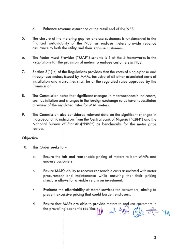 “Evaluate the affordability of meter services for consumers, aiming to prevent excessive pricing that could burden end-users. Ensure that MAPs are able to provide meters to end-use customers in the prevailing economic realities.”