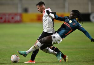 (FILES) Liga de Quito’s Haitian defender Ricardo Ade (R) and Always Ready’s midfielder Robson Matheus fight for the ball during the Copa Sudamericana knockout round playoff second leg football match between Bolivia’s Always Ready and Ecuador’s Liga de Quito at the Municipal de Villa Ingenio stadium in El Alto, Bolivia, on July 25, 2024. Free the country, we want to live in peace, said Ricardo Ade, a member of the Haitian national team that will compete in the World Cup in the United States, who made this appeal to the violent gangs that have caused a crisis in his impoverished nation.