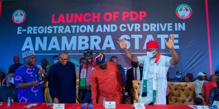 The Peoples Democratic Party (PDP) has continued to demonstrate the party’s resolution on the 2021 Anambra governorship election as Governor Godwin Obaseki of Edo State led a delegation of top party leaders, including Governor Seyi Makinde of Oyo State and Governor Okezie Ikpeazu of Abia State, to launch the PDP e-registration and Continuos Voter Registration (CRV) drive in the southeastern state.