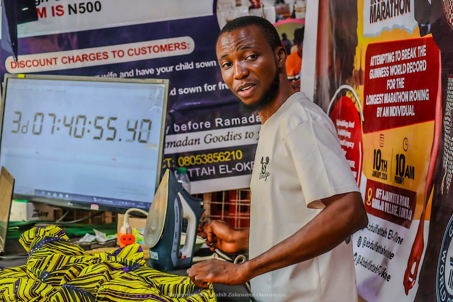 A man, Dauda Abdulfatai, who initiated a 200-hour ironing marathon to surpass Gareth Sander’s Guinness World Record of 100 hours, unexpectedly terminated his attempt after exceeding 142 hours of continuous ironing.