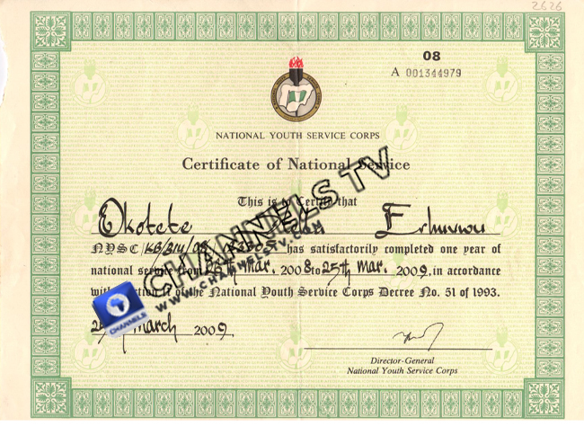 The documents showed that Okotete graduated from Benson Idahosa University in 2007 with a second class lower grade in International Studies and Diplomacy and concluded the compulsory National Youth Service Corps (NYSC) from Kebbi State in 2009.