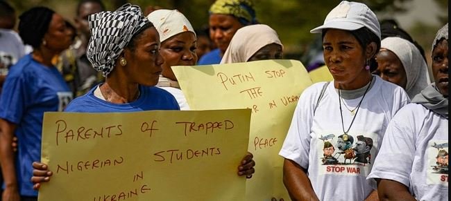 Parents of Nigerian students in Ukraine have protested at the Russian Embassy in Abuja, calling for peace in the Slavic nations.