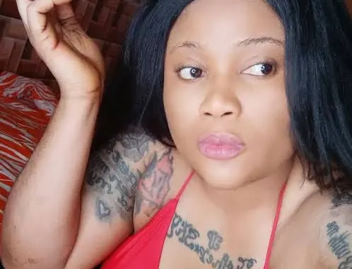 She accused the actor of sleeping with her. She also dragged the actor’s wife, Jennifer Awele, on social media, after she blocked her for tattooing her husband’s name on her body.