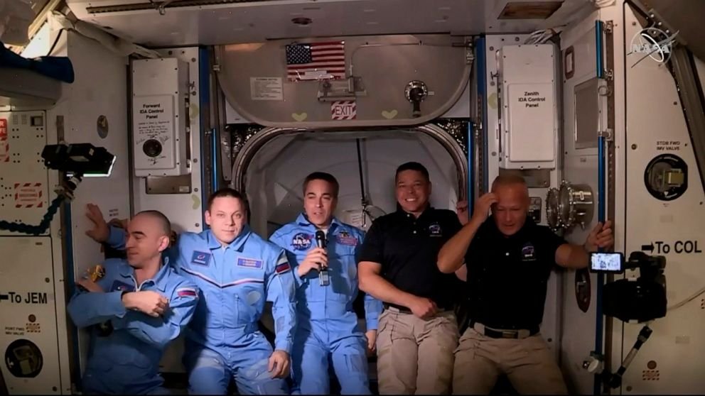 The crew is comprised of three Americans — Michael Hopkins, Victor Glover and Shannon Walker — and Japan’s Soichi Noguchi.