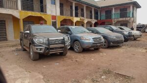 Weapons, equipment, IEDs and stolen vehicles also recovered include; 3 x G3 rifles, 9 x automatic pump action rifles, 7 x Double Barrel Guns, 2 x Locally Made Pistols, 2 x rocket-propelled grenades bombs, 2 x AK 47 magazines and 1 x G3 magazine. Others are 26 rounds of 7.62mm Special ammunition, 16 rounds of 7.62mm NATO ammunition, 72 pump action cartridges, 1 x chainsaw, 1 x laptop, 1 x CCTV DVR, 26 x CCTV cameras, 17 x baofeng radios with batteries and 10 without batteries including their chargers. Also recovered were 6 x handheld IEDs, 26 x android phones, 25 x normal phones, 1 x inverter, 1 x SIM card registration machine, 4 x POS machines, 3 x motorcycle batteries for igniting IEDs, 2 x trumpets, 2 x Biafra flags, 20 x ESN certificates, 2 x dairies containing details of ammunition, food supplies and two pairs of Biafra liberation army uniforms.